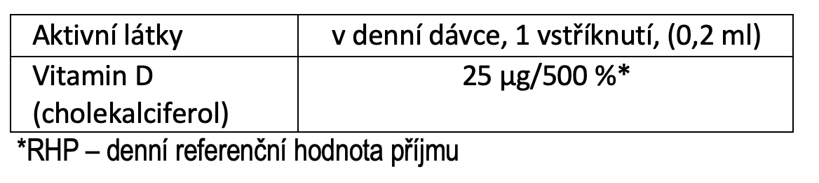 Doporučená denní dávka: Dospělí: 1 vstřik denně (0,2 ml). Balení obsahuje 100 doporučených denních dávek.
